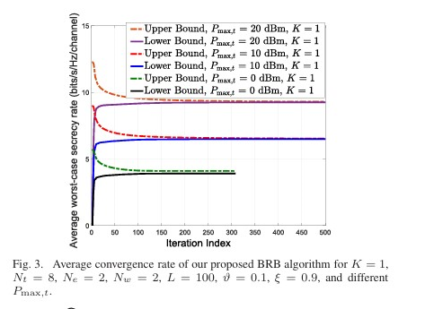 Abstract: Considering multi-user downlink ultra-high relia bility and low latency communications (URLLC), this paper employs the artificial noise (AN) technique to establish a secure and covert broadcast communication paradigm for the first time. Specifically, a multi-antenna transmitter (Alice) broadcasts the confidential information to multiple legitimate users in the presence of a multi-antenna malicious warden (Willie) and a multi-antenna eavesdropper (Eve). It is well known that AN is an effective technique for securing the physical layer secu rity (PLS) of signal transmissions. Nevertheless, AN emission also exposes the signal transmission and decreases the signal covertness. Taking into account the impact of short-packet URLLC transmissions, we investigate the joint optimization of the precoder and AN to maximize the secrecy rate under the covertness constraint. Although the considered problem is nonconvex, we propose a branch-reduce-and-bound (BRB)-based algorithm to solve it optimally. However, the nested-loop struc ture of the BRB-based algorithm incurs a high computational complexity. To strike a balance between the performance and computational complexity, we also propose a low-complexity penalty successive convex approximation (SCA)-based algorithm, whose performance approaches that of the optimal BRB-based algorithm, particularly in the low to medium transmit power regime. Simulation results demonstrate the excellent performance of our proposed optimization algorithms compared with various benchmark algorithms and unveil the importance of exploiting AN for secrecy provisioning.
