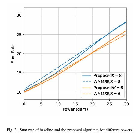 Abstract: Rate splitting multiple access (RSMA) has emerged as a promising technique in multi-antenna downlink transmis sions, which jointly encodes the private and common messages into a common stream for removing part of interference incurred by signal multiplexing and improving the spectral efficiency. Due to the decodability constraint of the common message at each user, the precoder optimization is non-convex, which lacks efficient algorithms. For facilitating the practical implementation of RSMAinfuture wireless networks, e.g., massive multiple-input multiple-output (MIMO), we propose an alternating direction method of multipliers (ADMM)-induced iterative algorithm to optimize the precoder, where the precoder is optimized for maximizing the sum rate at multiple users under the decod ability constraint of the common message. Specifically, we first employ the weighted minimum mean square error (WMMSE) algorithm to transform the non-convex problem into a sequence of convex problems, and then the ADMM algorithm is adopted to decouple the optimization variables and obtain solutions of each subproblem in closed form. Numerical results demonstrate that the proposed algorithm not only can achieve almost the same performance as existing WMMSE-based algorithms, but also has a faster convergence rate and lower computational complexity.