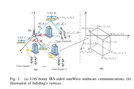 We design a resource allocation algorithm for UAV-borne IRS-aided mmWave multicast communications, jointly optimizing UAV placement, beamforming at the BS, and passive beamforming at the IRSs to maximize the minimum rate of user clusters.