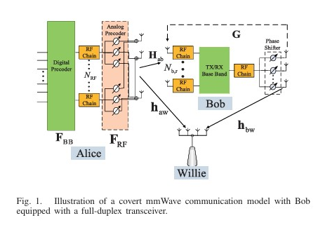 This paper investigates covert millimeter-wave (mmWave) communications, where a multi-antenna transmitter (Alice) sends information covertly to a full-duplex receiver (Bob) in the presence of a warden (Willie). The authors jointly optimize the analog beamforming at Alice and Bob to maximize the covert rate while satisfying covertness and communication outage constraints.