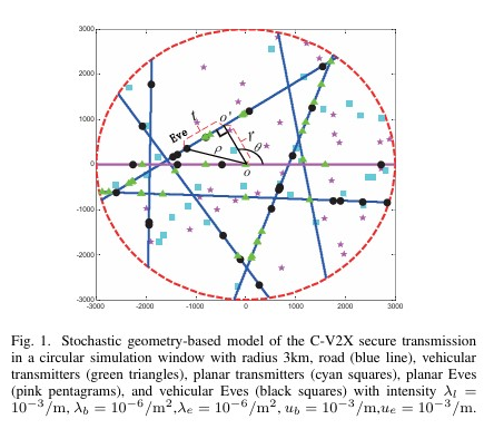 We investigates the physical layer security (PLS) of cellular vehicle-to-everything (C-V2X) networks using artificial noise (AN) and secure beamforming techniques. The authors build an analytical framework based on stochastic geometry to study the PLS of multi-antenna C-V2X networks. They derive closed-form expressions for coverage probability and secrecy probability and analyze the effective secrecy throughput to evaluate the network’s security performance. Simulation results show that increasing the number of transmit antennas improves the robustness of the secure transmission strategy and that the optimal power allocation ratio between confidential information and AN remains relatively stable for different numbers of antennas.
