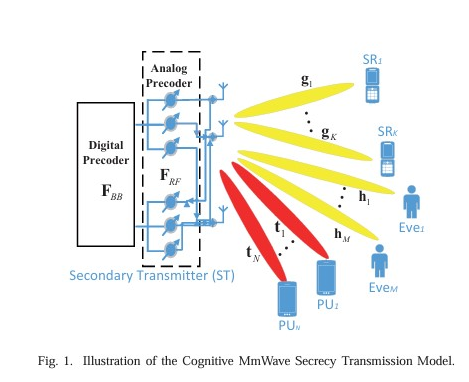 We investigates the hybrid secure precoder design for cognitive millimeter wave (mmWave) networks to enhance physical layer security. The authors aim to maximize the minimum secrecy rate of secondary users under constraints on interference power and quality of service. They formulate a non-convex optimization problem and propose a penalty dual decomposition (PDD) based iterative algorithm to solve it. Simulation results demonstrate the efficiency of the proposed algorithm in improving secrecy performance compared to traditional methods.